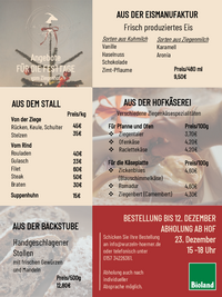 AUS DER EISMANUFAKTUR Frisch produziertes Eis Sorten aus Kuhmilch Angebote FÜR DIE FESTTAGE Vanille Haselnuss Schokolade Zimt-Pflaume Sorten aus Ziegenmilch Karamell Aronia vom Ziegenhof AUS DER…